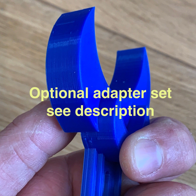 For skeins up to 100g (4oz) use the optional adapter kit to enlarge the moons. Provided in same colour as the skein holder unless you ask :)