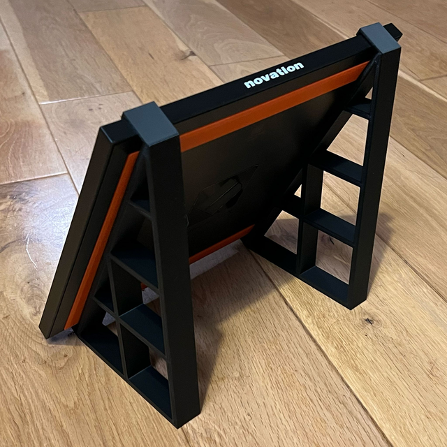 This is a 3D-printed stand of my own design, to hold a Novation Launchpad X at a pleasant working angle and reduce the footprint on your desk.